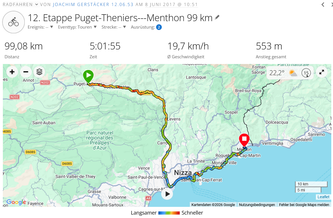 Die Etappe nach Nizza begann so gegen 11.00 Uhr. Da der Campingplatz sehr modern und neu eingerichtet (vor 3 Jahren) hatten sie natürlich auch ein funktionierendes WLAN, das nutze ich natürlich gern aus für neue Infos an euch,