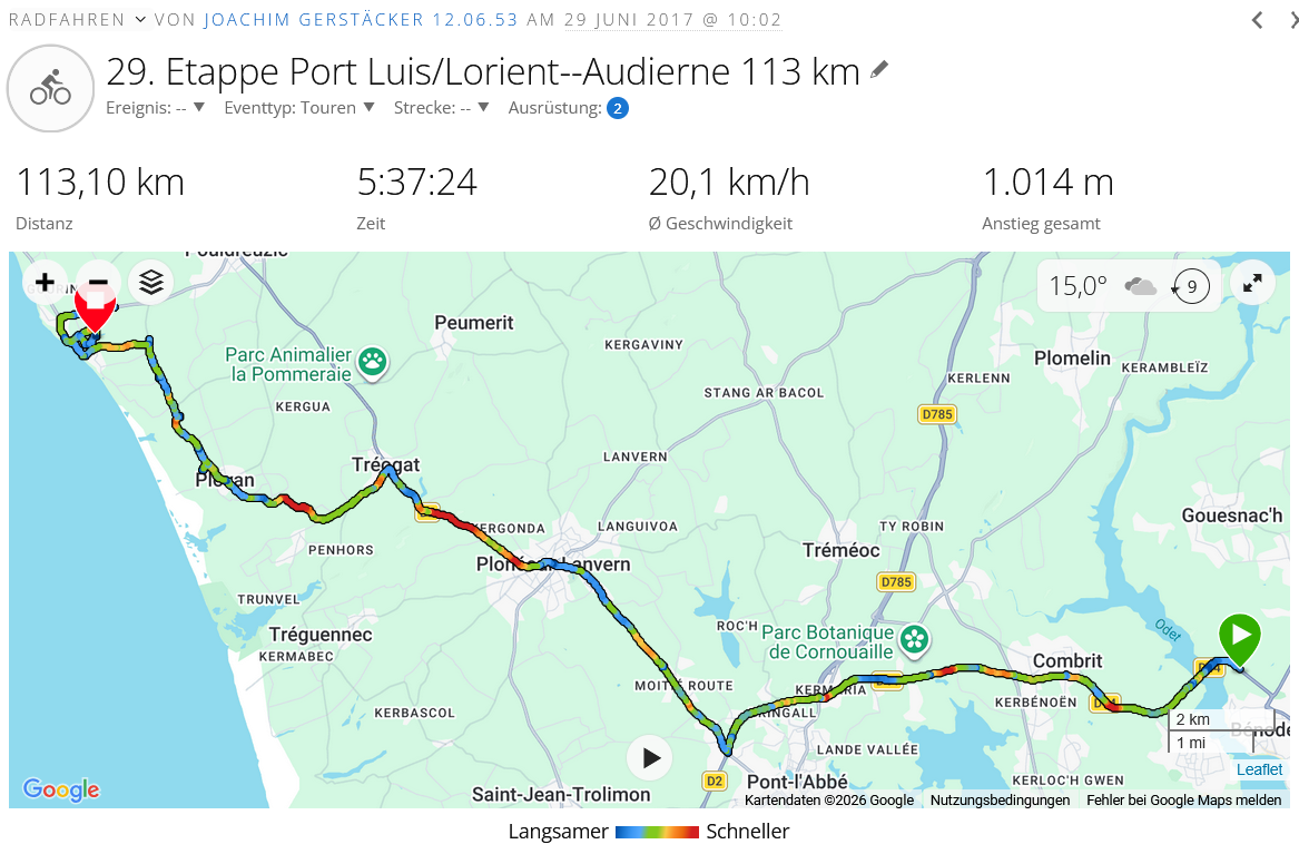 Mein Tag heute war ziemlich anstrengend und später auch immer wieder regnerisch bei Temperaturen unter 15 Grad, das brachte mich unterwegs auf das Wortspiel, statt Bretagne… Braintagne, so habe ich das mir vorher auch gedacht bei den Wetteraussichten für heute…Aber am Abend dann auch noch eine Sache, worüber ich mich riesig gefreut habe… später mehr dazu.