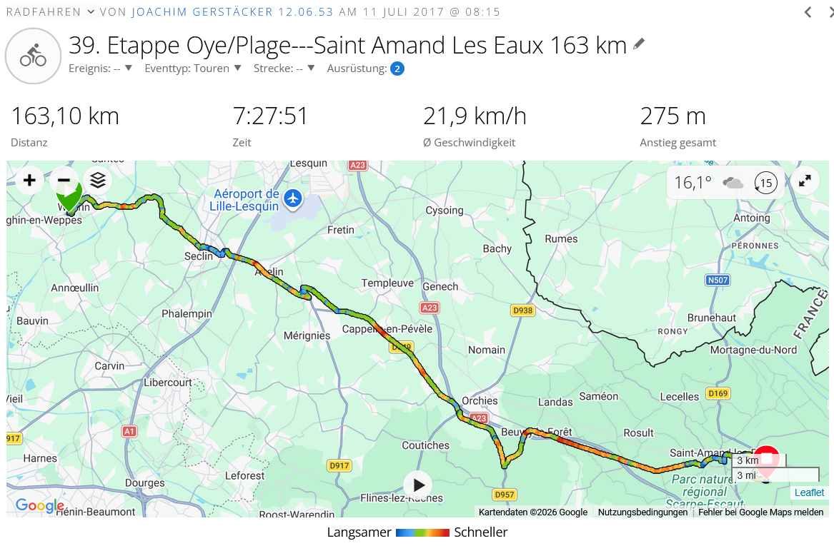 Nur noch wenige Km und schon sind 7 Wochen wie im Fluge vergangen. Für uns sehr sehr schnell, wie Du es empfindest, können wir uns nicht vorstellen. Aber wir durften über 6 Wochen Deine Begleiter sein, vielen Dank dafür!!!! Du hast uns so viele, meist schöne, Einblicke in Frankreich vermittelt und wir sind sehr neugierig geworden, vor allem auf die Strände im Norden.