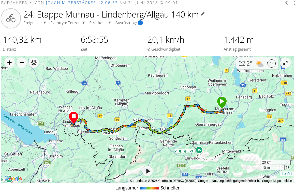 Die Alpenetappen waren schon ein Höhepunkt meiner Deutschland-Tour. Auch gestern das Stück von Murnau nach Füssen, das kannte ich noch nicht. Ab dem Grenztunnel in Füssen war mir alles bekannt, leider hatte ich die ganze Zeit heftigen Gegenwind.