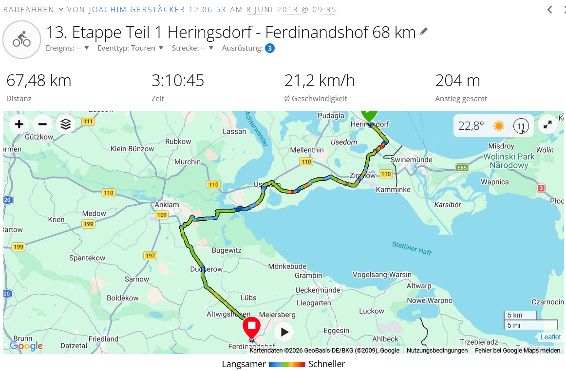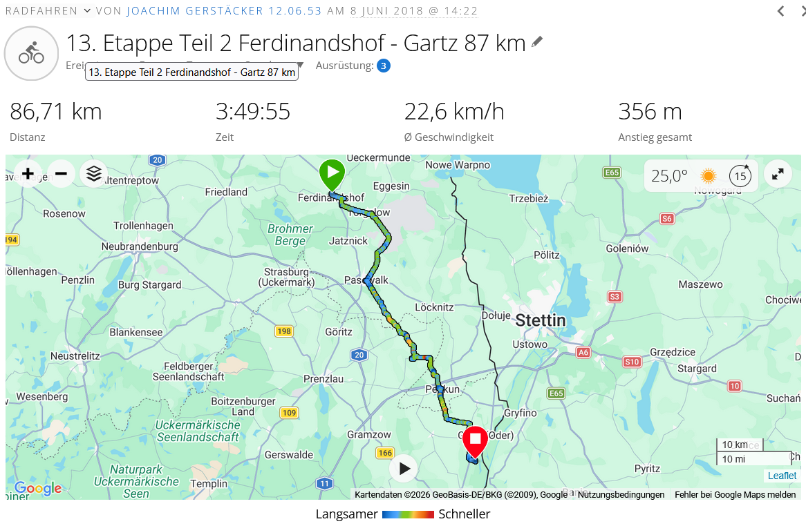 | Ahlbeck————-Gartz/Mescherin 133 km |