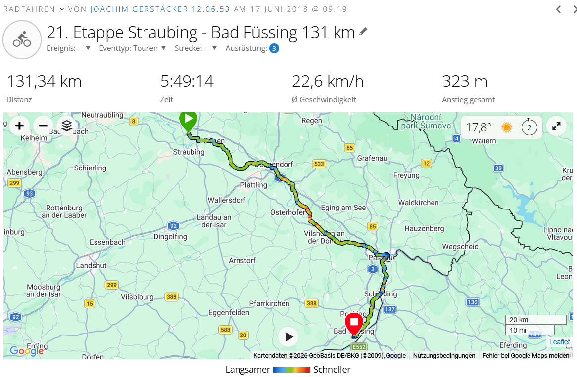 Das war die 21. Etappe, morgen geht es in das Voralpenland…