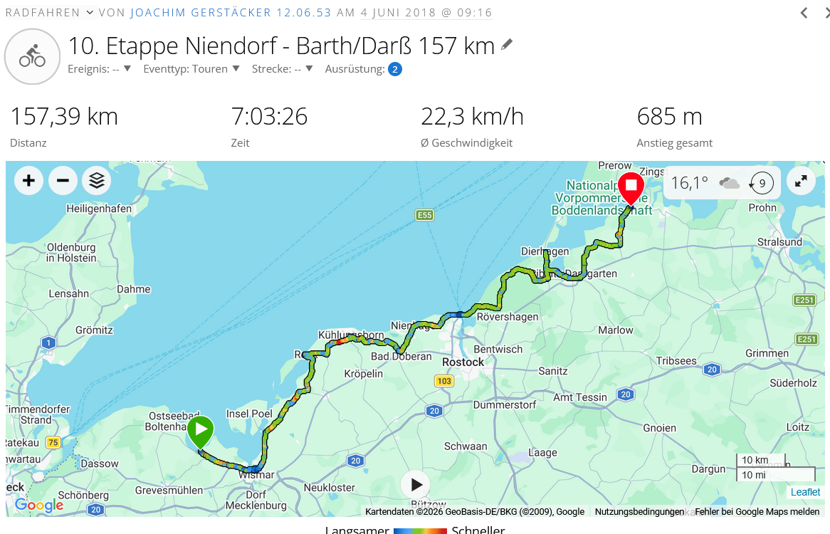 | Wismar/Niendorf——–Barth/Darß 149 km |