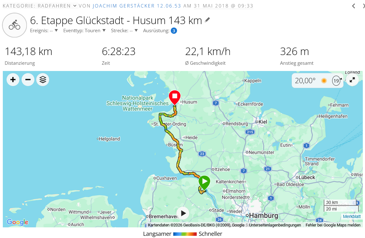 Der Campingplatz „Krautsand „ wird mir in gute Erinnerung bleiben, es war alles perfekt und mit viel Liebe zum Detail von dem Betreiber ausgestattet, die Fotos werden es zeigen. Nach meiner Abfahrt am Campingplatz bin ich noch kurz auf den Deich gefahren, mit einem Ehepaar aus dem Ort habe ich mich noch eine ganze Zeit unterhalten, dann noch ein paar Fotos und die Etappe wurde gestartet,