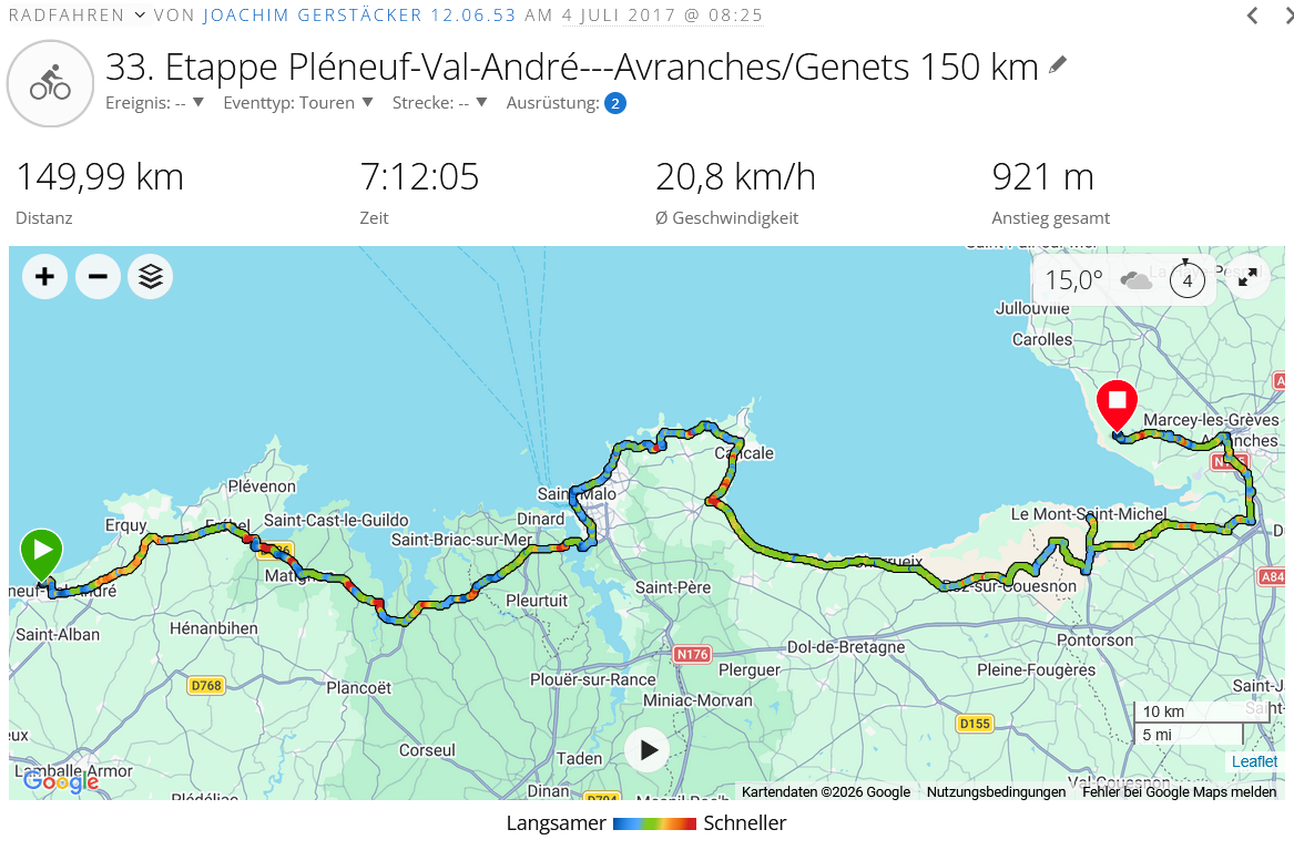 Pleneuf————Mont Saint Michel/Genets 146 km