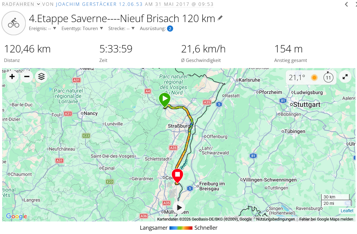 Vor dem Start zur 4. Etappe besuche ich den Firmensitz von Gerstaecker-France in Saverne. Nach einer kurzen Stipvisite starte ich dann am Vormittag in Richtung Straßbourg.
